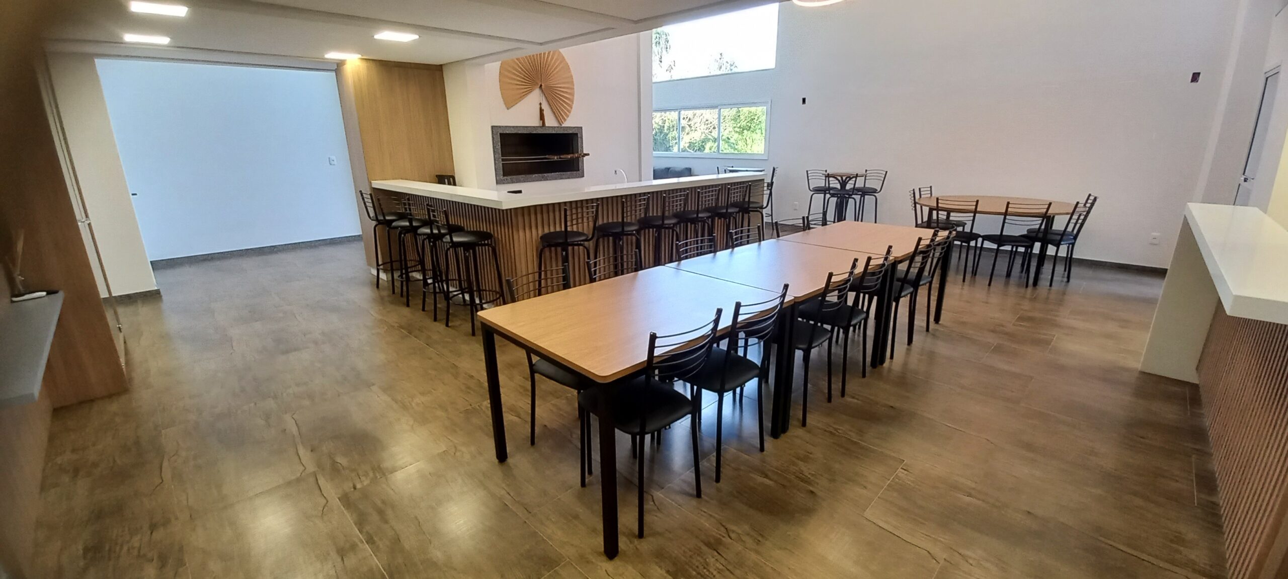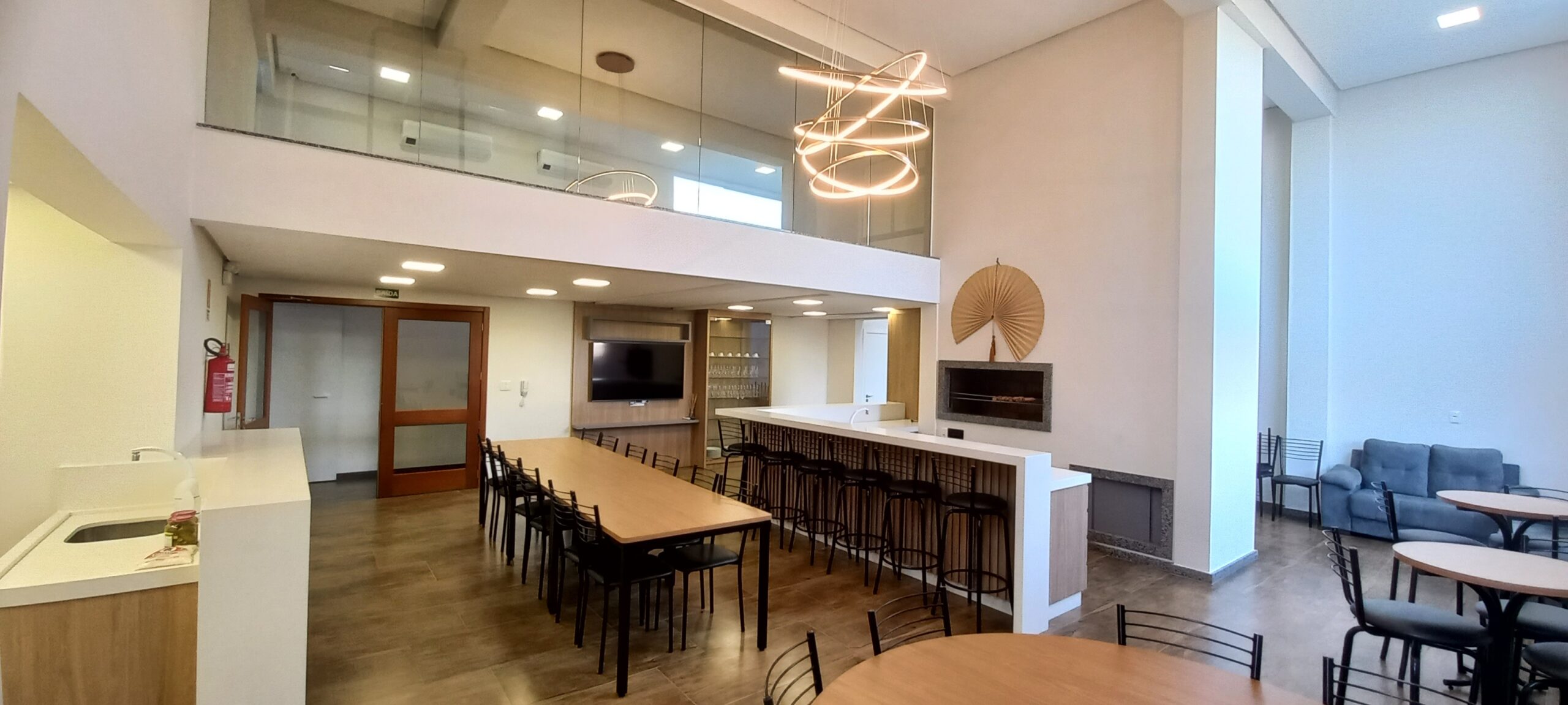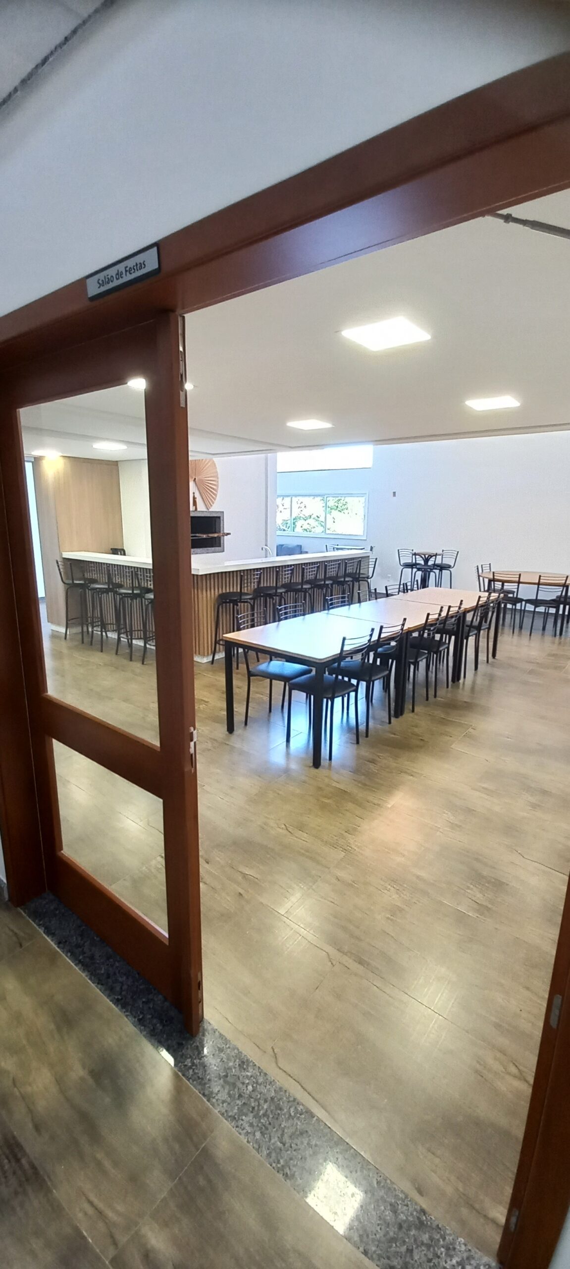 SALÃO DE FESTAS AMPLO E COM PÉ DIREITO DUPLO, JÁ MOBILIADO
